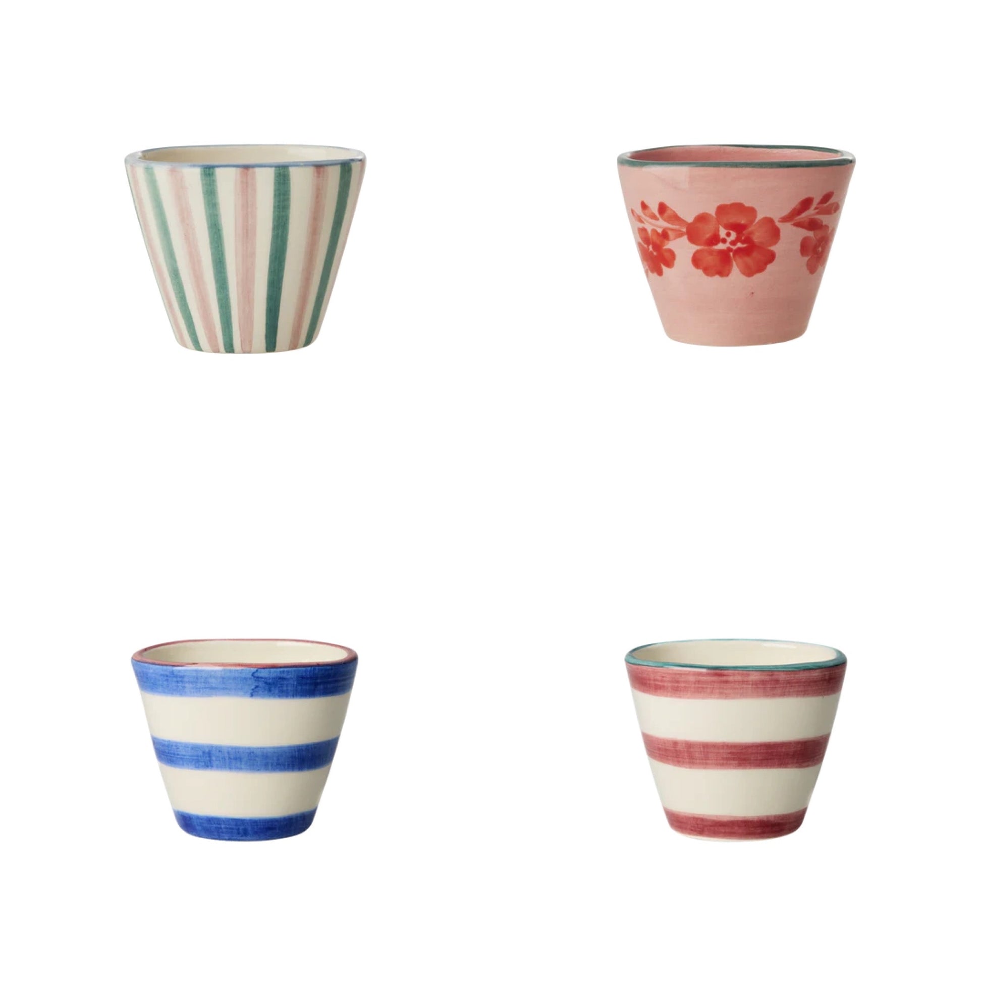Your espresso has never tasted better than in this sweet, oval ceramic cup. It is hand-painted with gorgeous stripes in lovely colours, and is absolutely perfect for kickstarting your day - whether with coffee or an invigorating ginger shot.