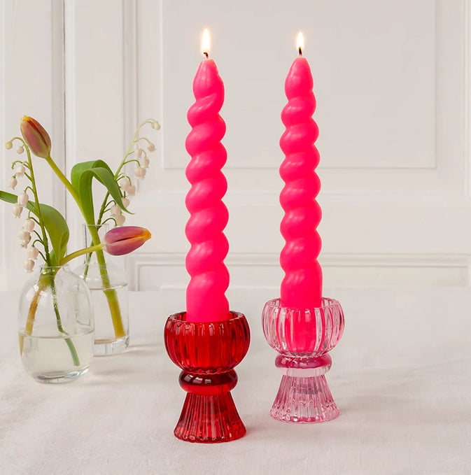 Light up a room with beautiful candlelight with this pack of two candles with a twisting spiral shape. The unique shape and bold colour will look great on a dining table or mantelpiece.