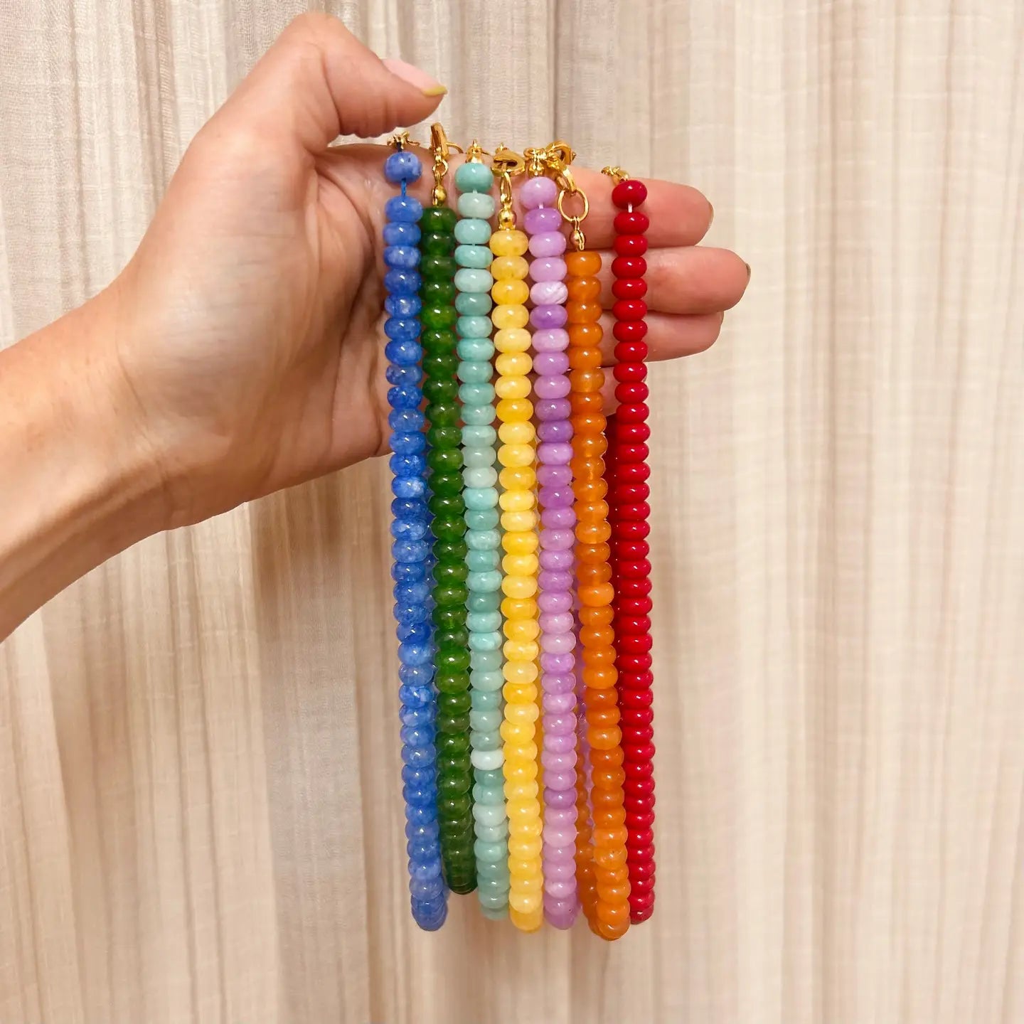 Add a splash of joy to your look with these beautiful rainbow beaded necklaces.