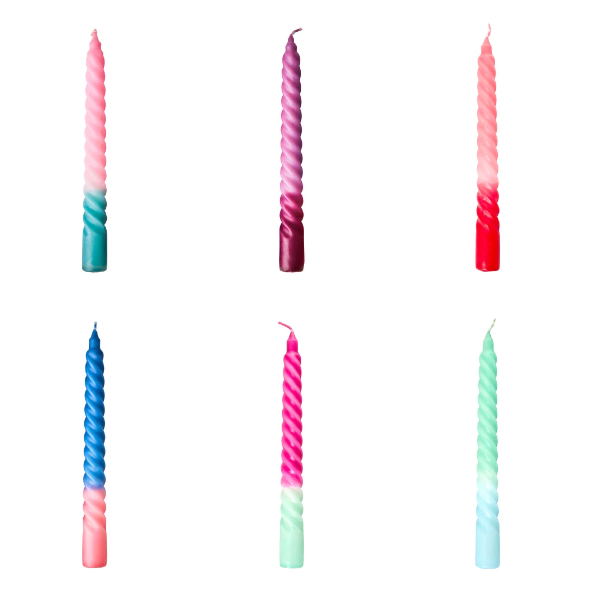 These lovely candles are twisted and two toned in gorgeous colours ...